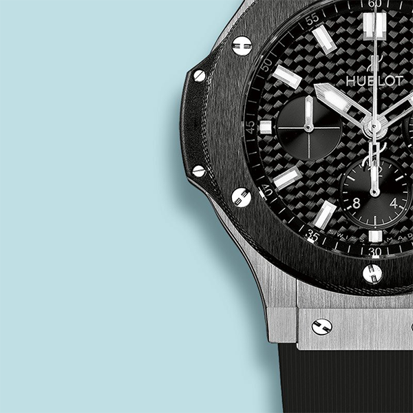 Bezel: Vertical satin-finished black ceramic with 6 H-shaped titanium screws